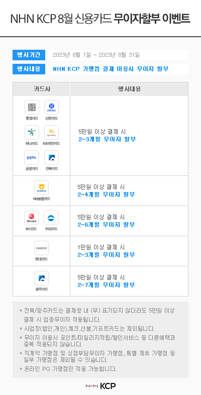 2023³â 8¿ù ¹«ÀÌÀÚ ÇҺξȳ» [ KCP / PAYCO ]