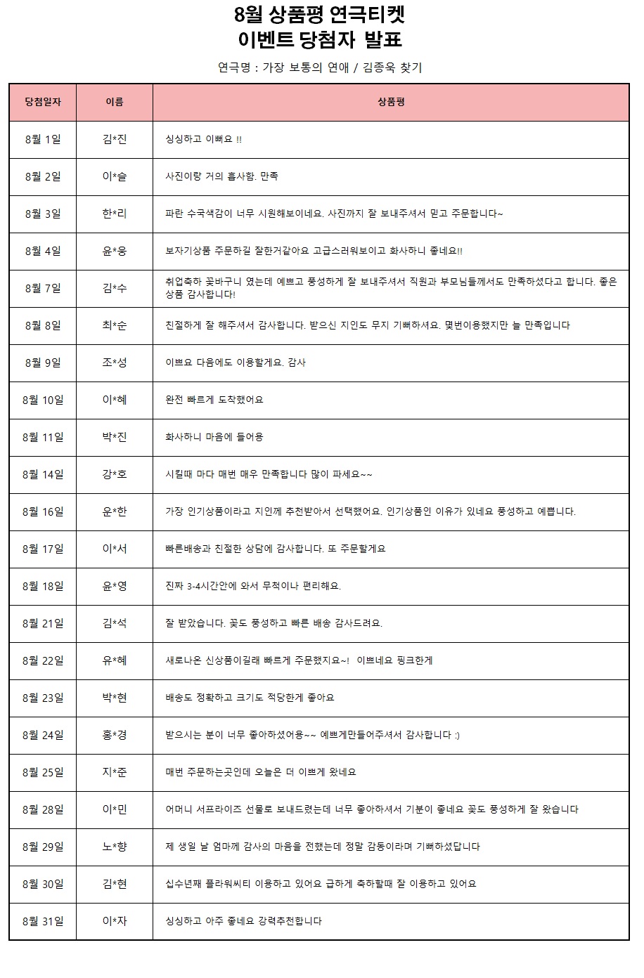 title : 2023³â 8¿ù »óǰÆò ¿¬±ØÆ¼ÄÏ À̺¥Æ® [´ç÷ÀÚ ¹ßÇ¥]