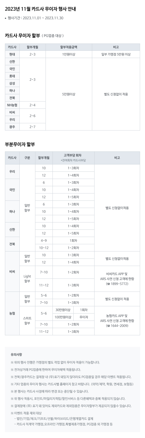 2023³â 11¿ù ¹«ÀÌÀÚ ÇҺξȳ» [ KCP / PAYCO ]
