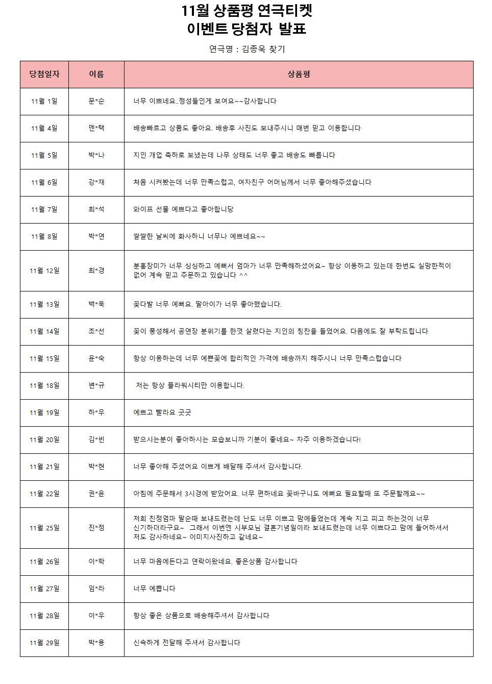 2024³â 11¿ù »óǰÆò ¿¬±ØÆ¼ÄÏ À̺¥Æ® [´ç÷ÀÚ ¹ßÇ¥]